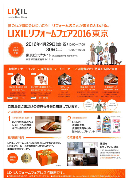 「LIXILリフォームフェア2016東京」を4月29日(金・祝)・30日(土)に開催いたします。