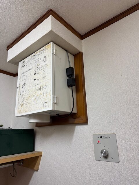 さてこちら、弊社が手掛けている”FPの家”の24時間換気システムのファンですが、こちらのお宅では20年を超えてきて不調になりましたので交換する運びになりました。