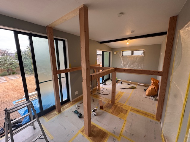 工事がスタートし骨組を造作しているところ